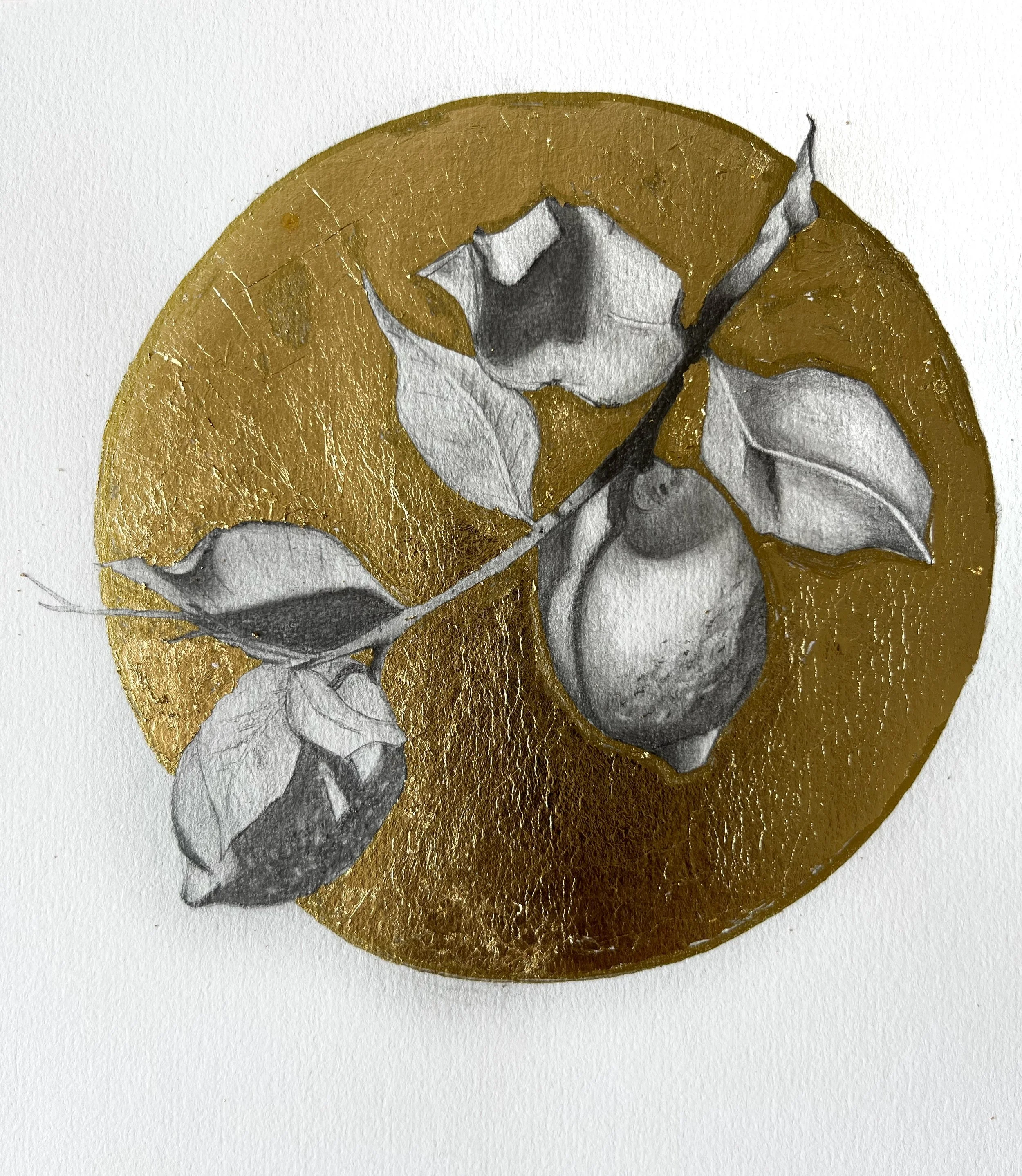 This sketch is a study for a future series for an upcoming exhibition. I used Canson paper, graphite pencil, and charcoal. The circle was drawn with a gold ink pen.
